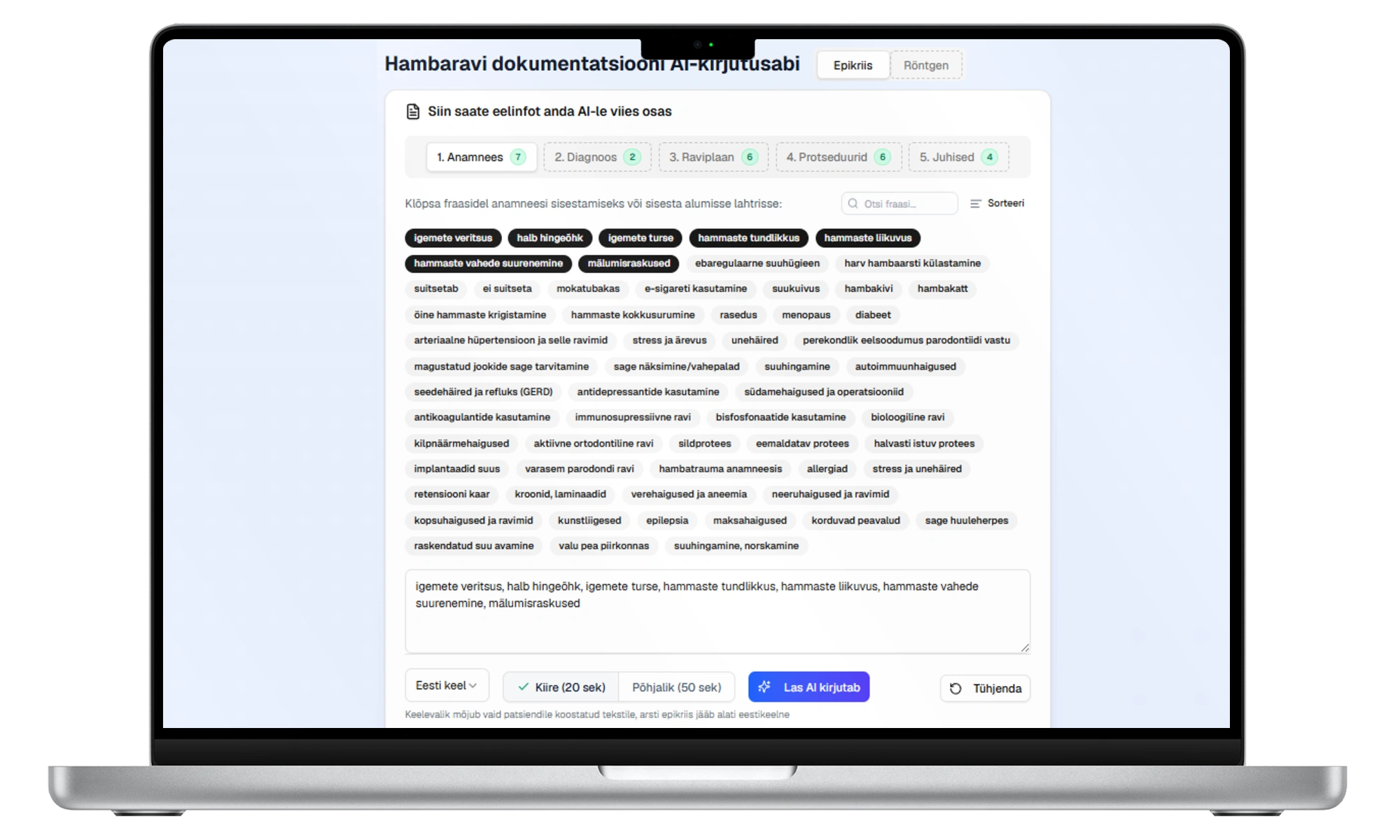 01Süsteem genereerib hetkega hambaravi loogikale vastava epikriisi ja selged juhised patsiendile.